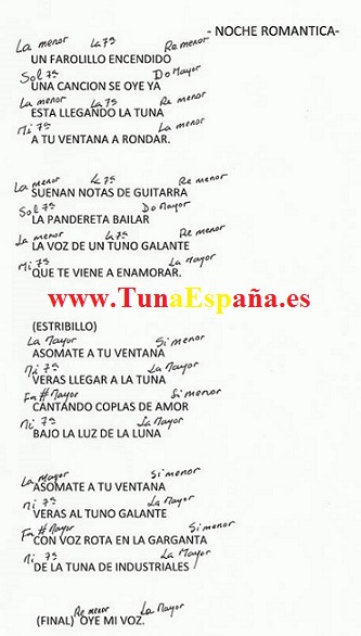 Noche Romantica,Acorde Guitarra, Letra Tabladura, Cancionero Tuna, TUNO