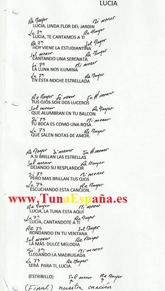 Lucia, ,Acorde Guitarra, Letra Tabladura, Cancionero Tuna, TUNO
