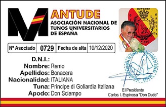 ** Don Alberto Tofani «Don l’Ispanico Princeps», Principe di Goliardia Sovrano commendevolissimo Ordine Goliardico San Salvi de La Universidad de Florencia (Jefe Goliardia de Florencia 2017-2019). Italia
